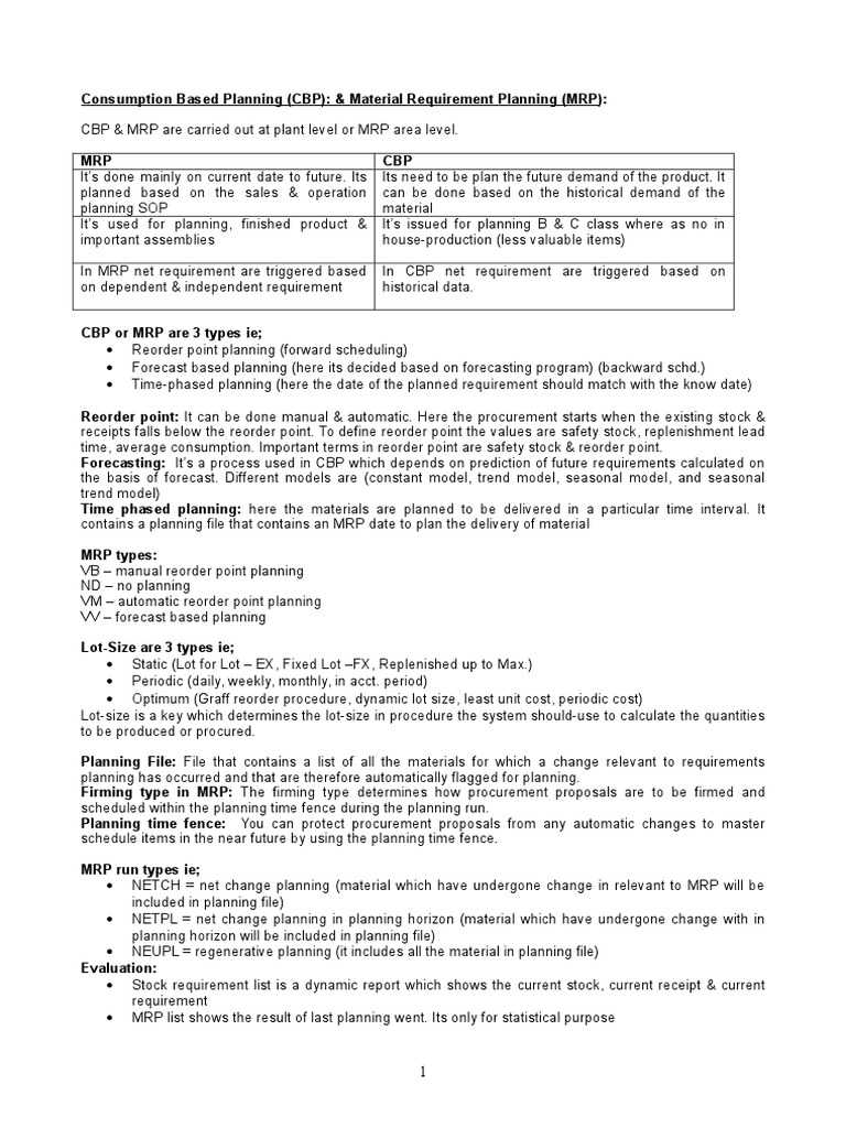 Understanding Sap Consumption Based Planning Mrp Part I