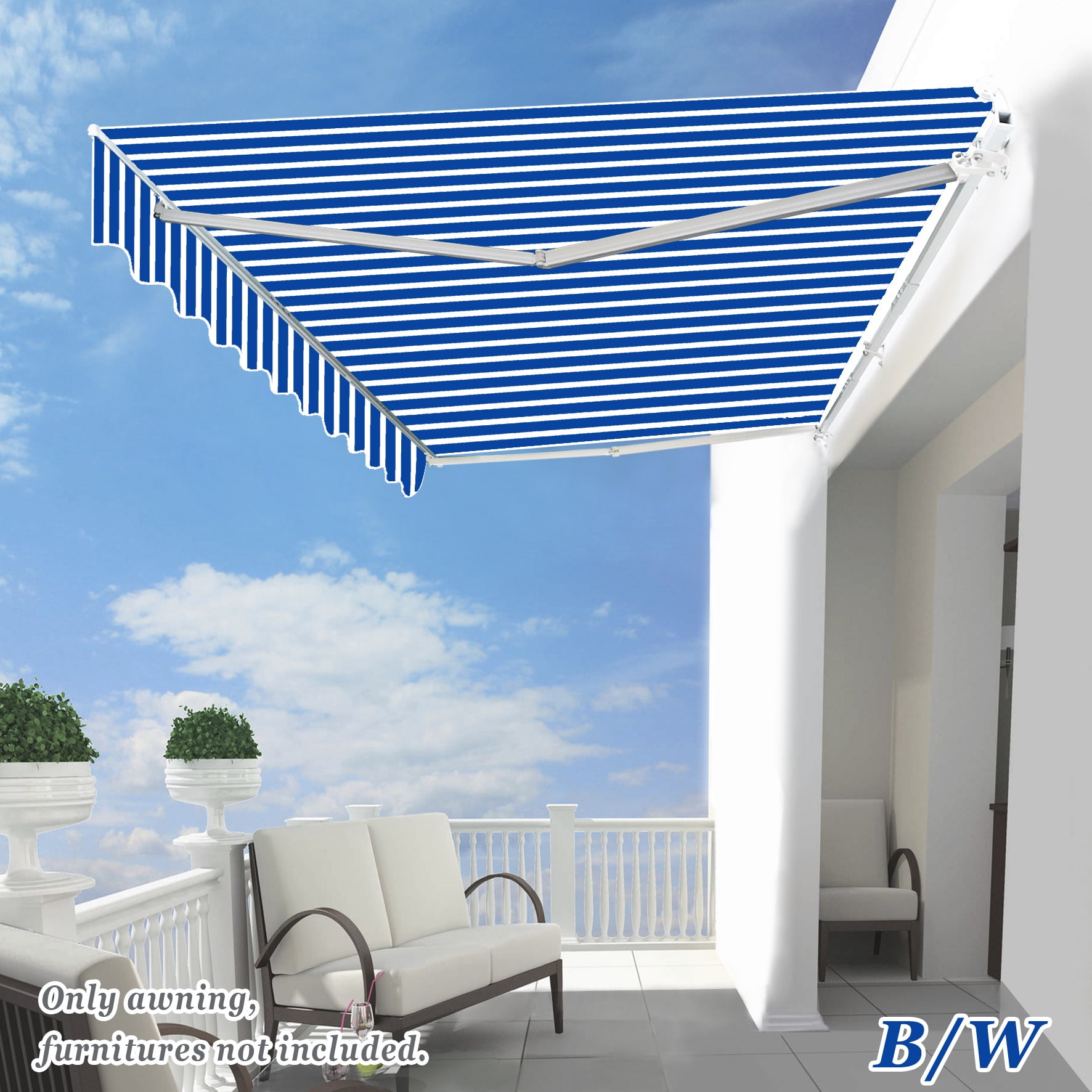 Aleko Manual Retractable Half Cassette Patio Awning Blue 10x8 Ft